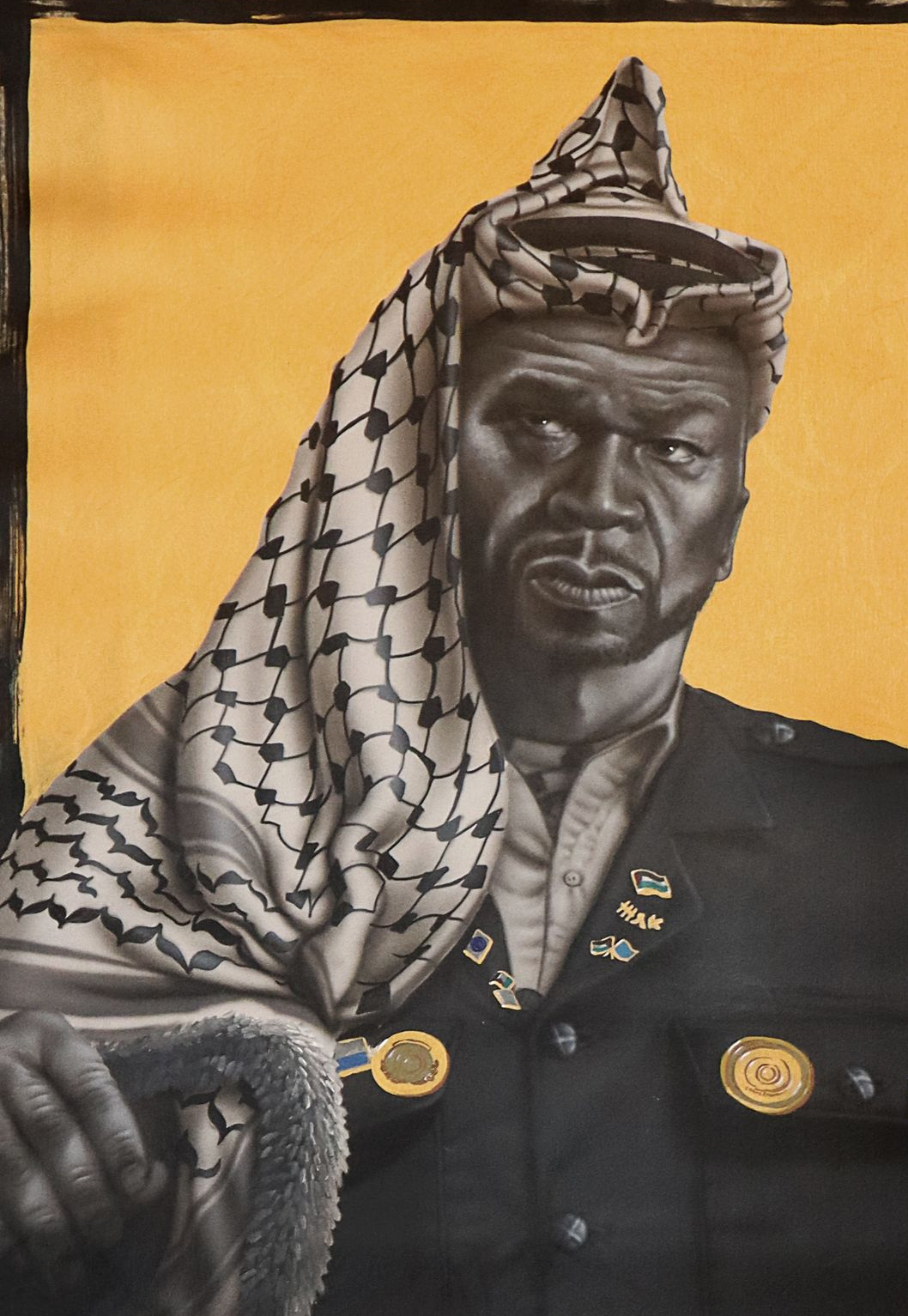 Auftragsgemälde für Rapper Massiv. Dr. Dre in Gebetskleidung.